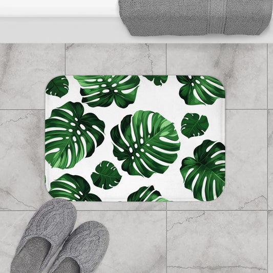 Akaka Monstera Custom Hawaiian Print Memory Foam Bath Mat, Matching Bathroom Sets